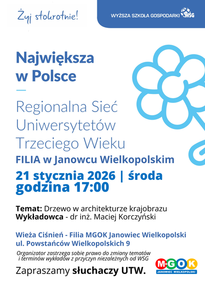 WYKŁAD DLA SŁUCHACZY UNIWERSYTETU TRZECIEGO WIEKU / "Drzewo w architekturze krajobrazu"